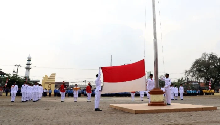 SERANGTIMUR.CO.ID, SERANG | Bupati Serang Ratu Tatu Chasanah bersama Wakil Bupati Serang Pandji Tirtayasa bersama seluruh pegawai Pemerintahan Kabupaten Serang, Polri, TNI dan masyarakat laksanakan upacara Hut RI 74, di Alun-Alun Keramatwatu, Kabuapten Serang, Sabtu (17/8/2019).