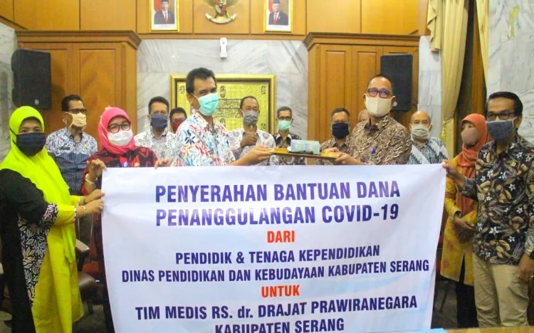 SERANG (STC) - Para pendidik atau guru dan tenaga kependidikan di Kabupaten Serang turut peduli terhadap proses penanganan virus Corona atau Covid-19. Mereka berdonasi secara sukarela, kemudian hasilnya diberikan untuk tenaga medis di Rumah Sakit dr Drajat Prawiranegara (RSDP), sebagai rumah sakit rujukan Covid-19.