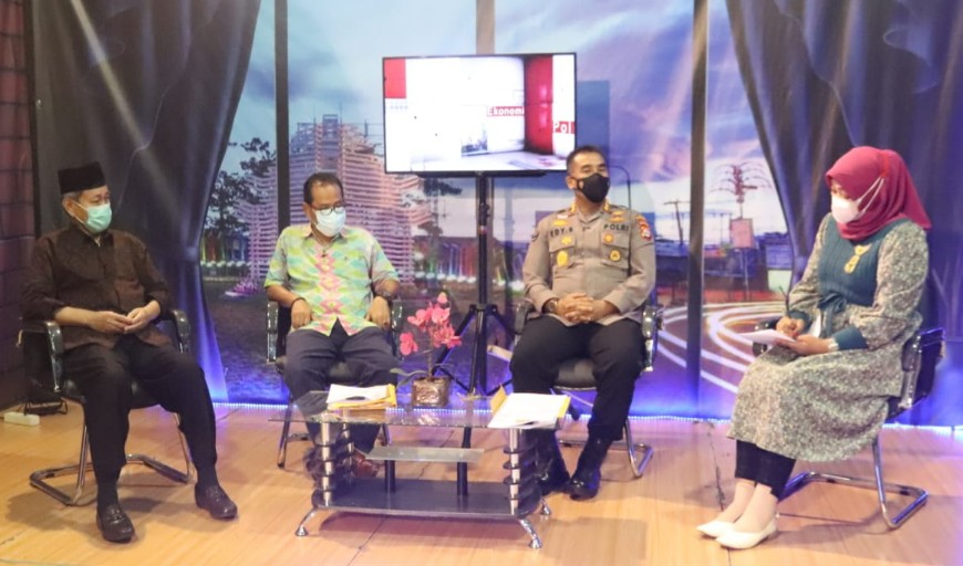 SERANG | Kabid Humas Polda Banten Kombes Pol Edy Sumardi menjadi narasumber live show BantenTV 100 hari Kerja Kapolda Banten Irjen Pol Dr. Rudy Heriyanto Adi Nugroho, dengan tema Polri Membumi Di Bumi Ulama Bumi Santri, di Gedung Graha Pena BantenTV, Senin (12/4/2021).
