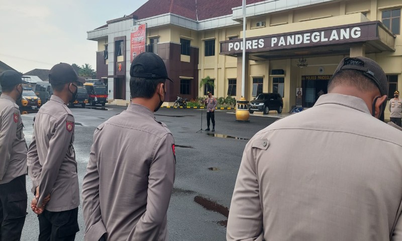 PANDEGLANG | Kepala Seksi Kehumasan Polres Pandeglang Polda Banten AKP Humaedi, S.H memberikan arahan serta motivasi kepada para anggota pada saat apel pagi di Lapangan Polres Pandeglang, Selasa (28/9/2021).