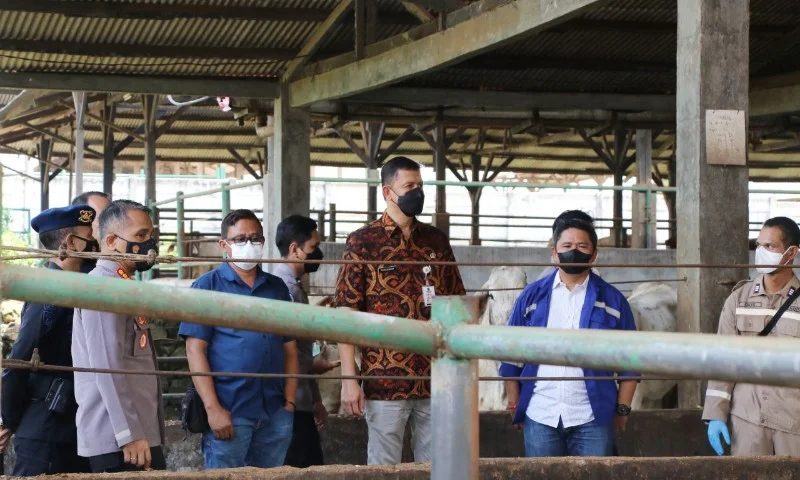 SERANG | Dinas Pertanian (Distan) Kabupaten Serang mendampingi Polda Banten melakukan pengecekan sapi impor di PT. Lembu Jantan Perkasa di jalan raya Serang-Pandeglang, Desa Sindangsari, Kecamatan Pabuaran pada Jum’at, 19 Mei 2022. Hasilnya, tidak ditemukan hewan jenis sapi terpapar Penyakit Mulut dan Kuku (PMK).