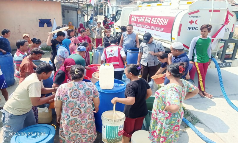 SERANG | Palang Merah Indonesia (PMI) Provinsi Banten terus menurunkan bantuan air bersih kepada warga yang mengalami bencana kekeringan. Layanan bantuan air bersih diperluas hingga ke Provinsi Banten bagian selatan.
